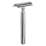 Brass handle piece, zinc die-cast shaving head, surfaces electroplated, bright chrome