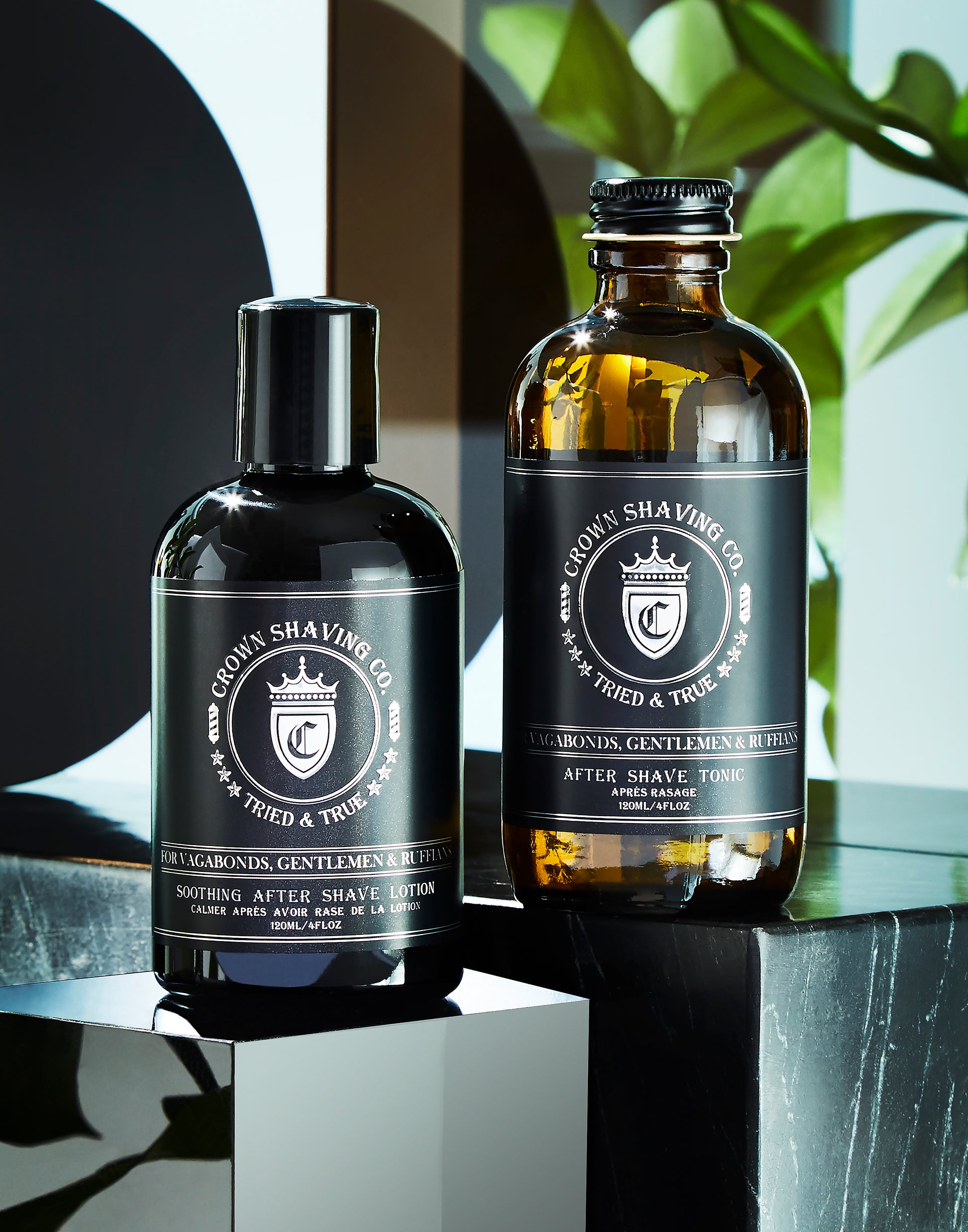 Crown Shaving After Shave Tonic is a classic men's grooming essential. One of the best tonics to emerge on the scene, this post-shave formulation soothes the skin while adding subtle hints of tobacco, leather essence, rum and barber's talc powder to your scent.