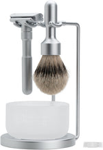 Merkur 4750 exclusive stands for the Future 700 shaving series. Solid base plate with space for the glass shaving bowl, carrying two hooks each for the razor and the brush. This set brings order into your bathroom and presents like a showcase your unique shaving accessory.