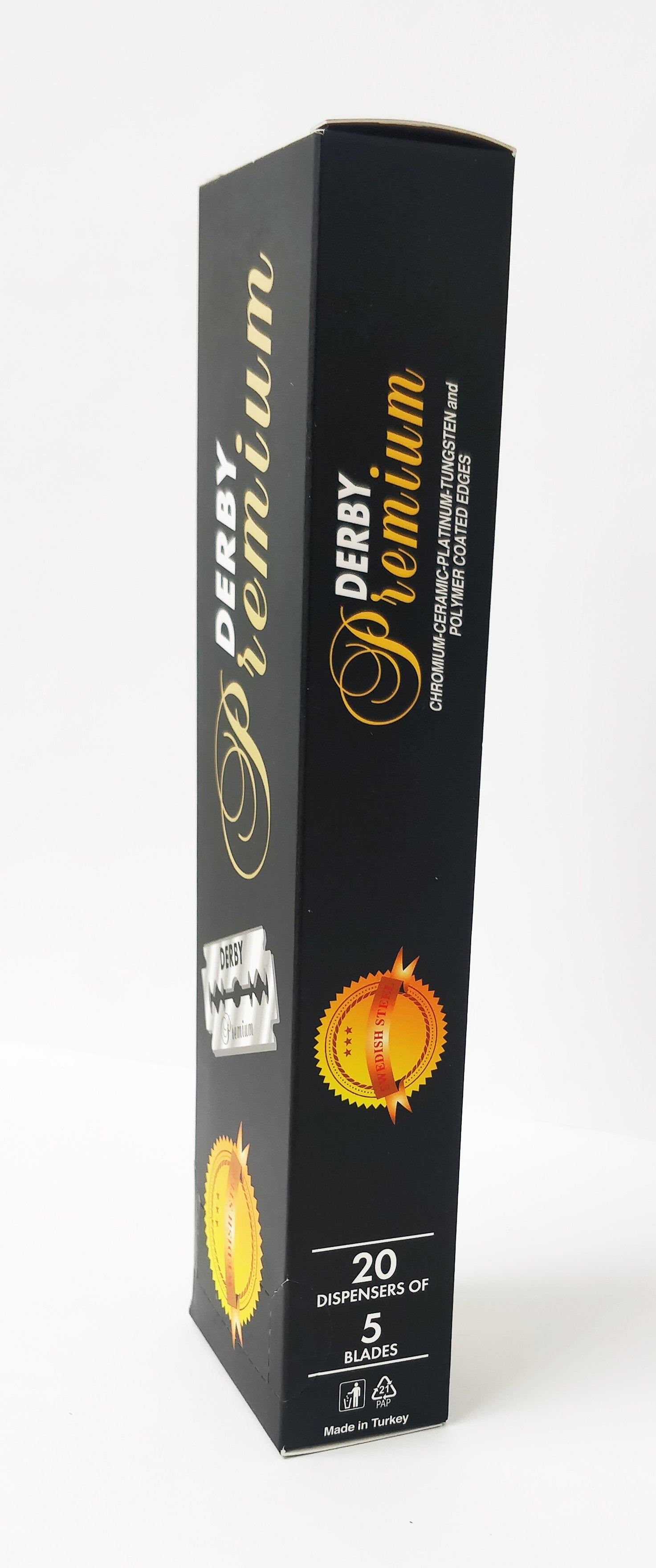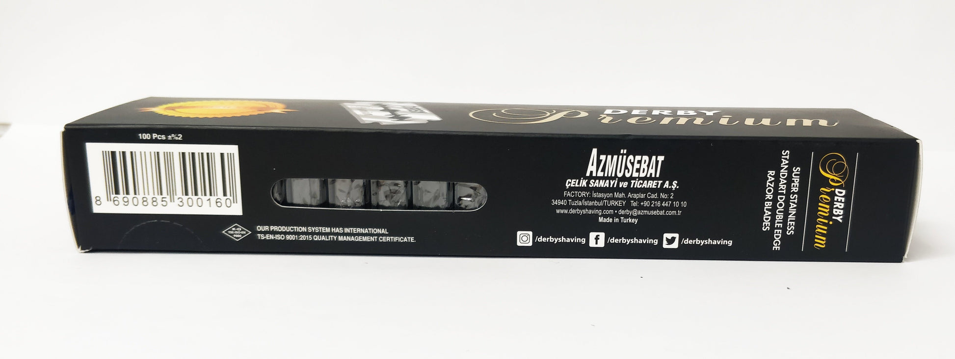 Les lames de rasoir Derby sont un produit d'Azmusebat de Turquie. Lames de rasoir à double tranchant Derby Premium, un choix populaire parmi les rasoirs humides du monde entier. Toutes les lames Derby sont perforées, durcies et rectifiées en utilisant l'équipement le plus avancé.