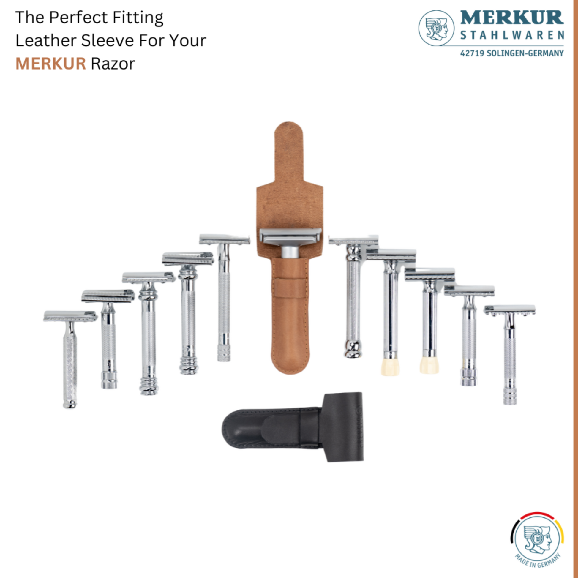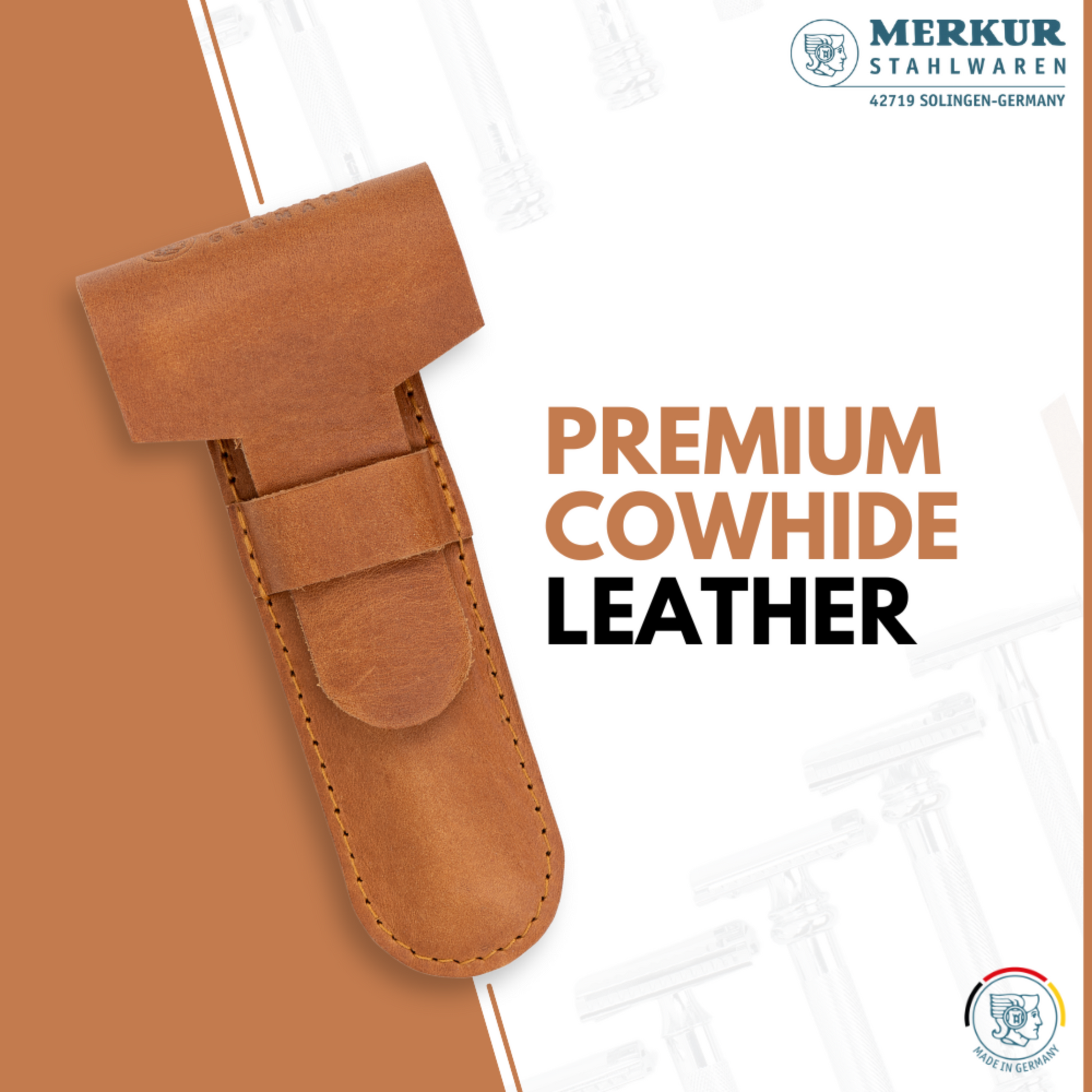 Compatibilité polyvalente : l'étui en cuir Merkur est conçu pour accueillir divers rasoirs de sécurité Merkur jusqu'à 110 mm de longueur, à l'exclusion du modèle 24001. Que vous possédiez le 34C, le 38C ou le Futur 700, cet étui offre un ajustement parfait et sécurisé à votre rasoir, le gardant protégé pendant le voyage ou le stockage.