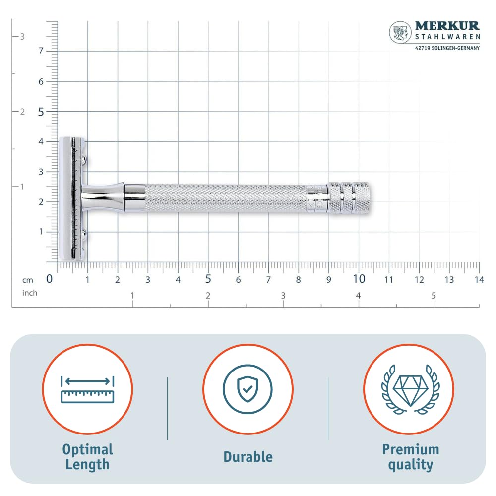 Merkur 23C 3-Piece DE Safety Razor, Closed Comb, Knurled Extra Long Handle, Chrome